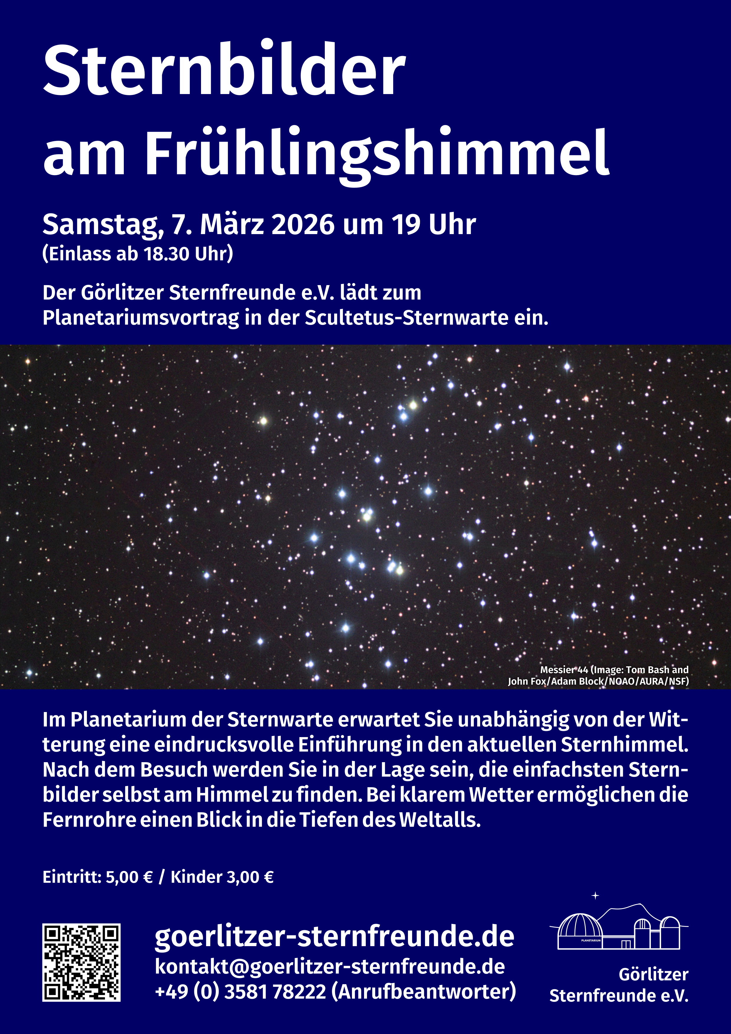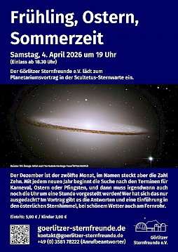 Samstag, 28.03. um 19 Uhr in der Sternwarte