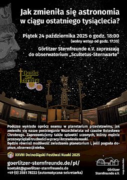 piątek, 24.10. o godz. 18:00 w obserwatorium