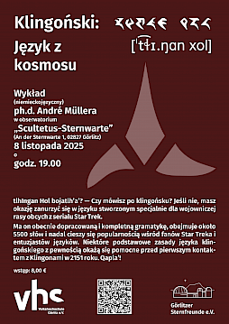 tlhIngan Hol bojatlh’a’? – Czy mówi pan(i) w języku klingońskim? Jeśli nie, ma pan(i) okazję zanurzyć się w języku wymyślonym specjalnie dla wojowniczej rasy obcych ze Star Treka, poznać historię jego powstania i uzyskać wgląd w dzisiejszą społeczność użytkowników języka klingońskiego.