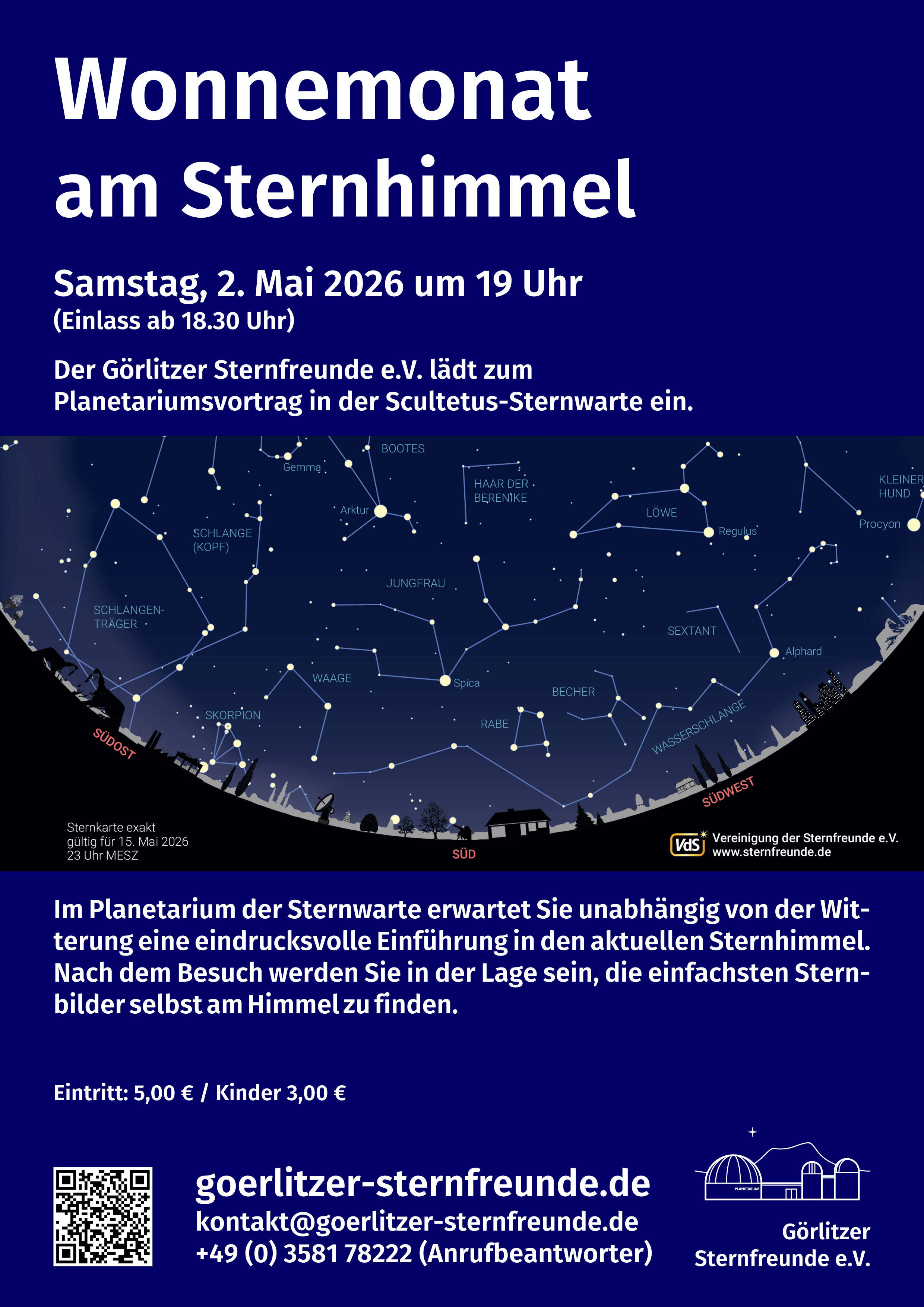 Samstag, 02.05. um 19 Uhr in der Sternwarte